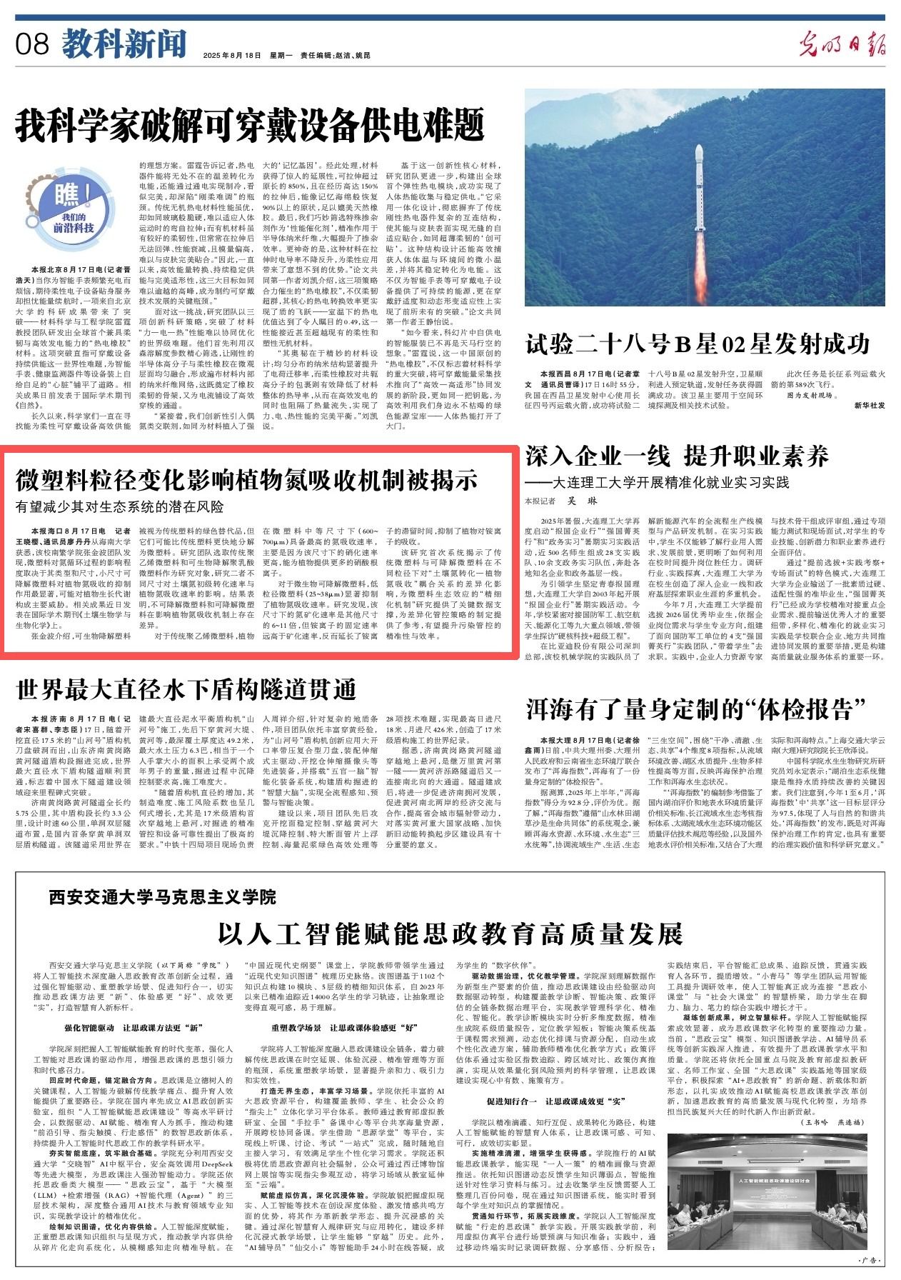(光明日报全媒体记者王晓樱 通讯员廖丹丹)8月16日,记者从开云手机入口获悉,该校南繁学院张金波团队发现,微塑料对氮循环过程的影响程度取决于其类型和尺寸,小尺寸可降解微塑料对植物氮吸收的抑制作用最显著,可能对植物生长代谢构成主要威胁。相关成果近日发表在国际期刊《土壤生物学与生物化学》上。团队负责人张金波介绍,可生物降解塑料被视为替代传统塑料以缓解土壤塑料污染的绿色替代品,但它们可能比传统塑料更快地分解为微塑料。...