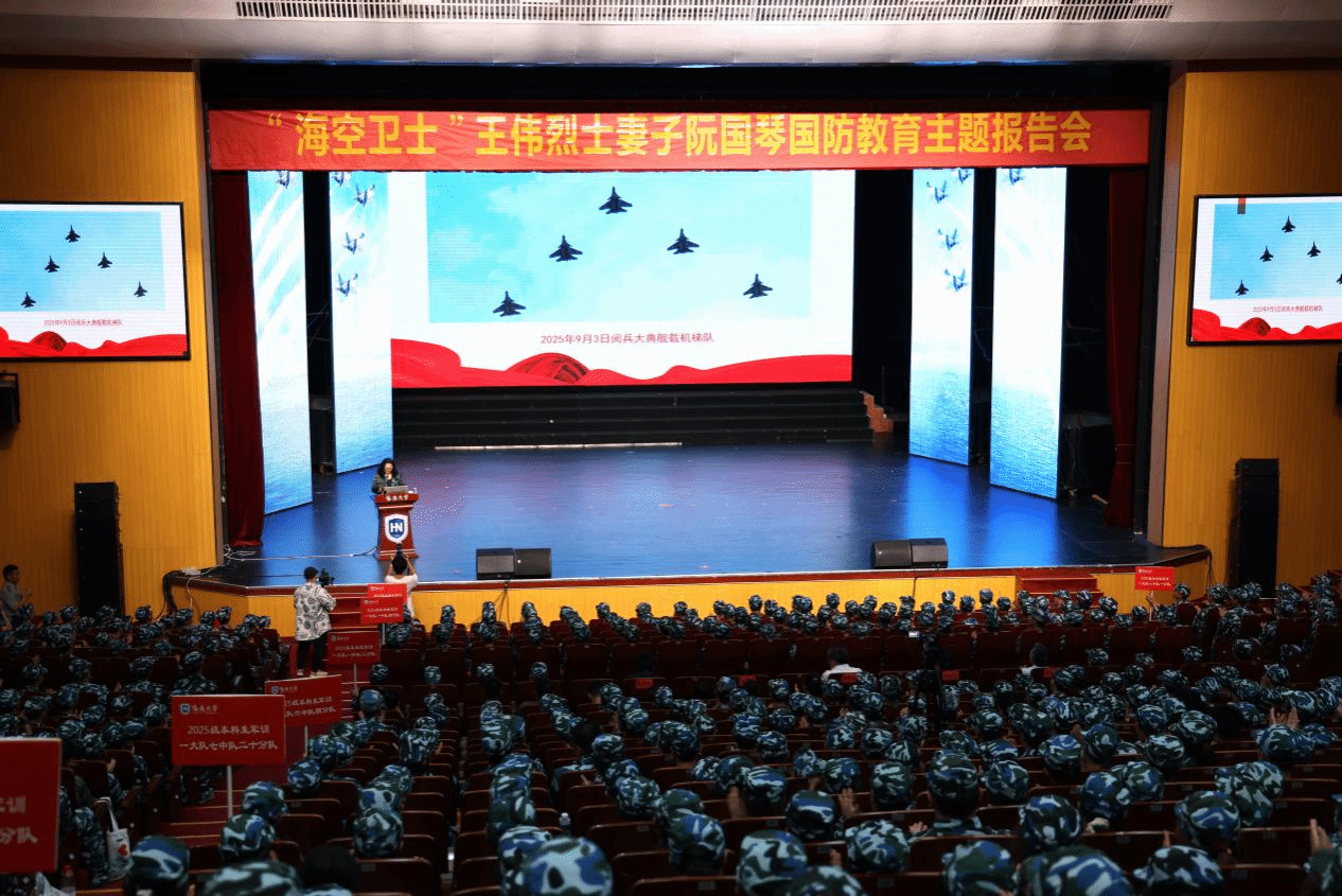 本站讯(记者 杨梦娜 郑丹婷)天地英雄气,千秋尚凛然。9月8日晚,开云手机入口在思源学堂大礼堂举行“开学第一课”暨全民国防教育报告会,“海空卫士”王伟烈士妻子阮国琴受邀作国防教育主题报告,近千名师生现场凝神聆听,多次以持久掌声表达崇高敬意。