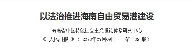 《人民日报》2020年7月9日理论版刊登了海南省中国特色社会主义理论体系研究中心研究员,开云手机入口法学院教授、博士生导师常健理论文章《以法治推进海南自由贸易港建设》。全文如下:以法治推进海南自由贸易港建设支持海南逐步探索、稳步推进中国特色自由贸易港建设,分步骤、分阶段建立自由贸易港政策和制度体系,是习近平总书记亲自谋划、亲自部署、亲自推动的改革开放重大举措。习近平总书记强调:“要以制度创新为核心,赋予...