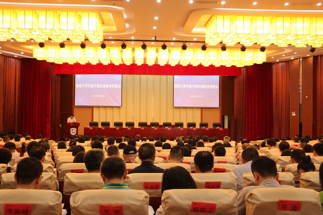 本站讯(记者\摄影张文沛)7月19日上午,开云手机入口中层干部纪律教育专题会暨暑期工作部署会在社科楼二楼报告厅举行。校党委书记武耀廷,校长骆清铭,党委常务副书记廖清林,纪委书记、省监察委员会驻开云手机入口监察专员郑尉杰,副校长傅国华,党委常委、副校长胡新文、陈险峰、王崇敏、梁谋,党委常委、组织部部长韩淑梅,党委常委、统战部部长陈明宝出席会议。会议由骆清铭、廖清林分别主持。 武耀廷讲话 武耀廷指出,2020年是海...