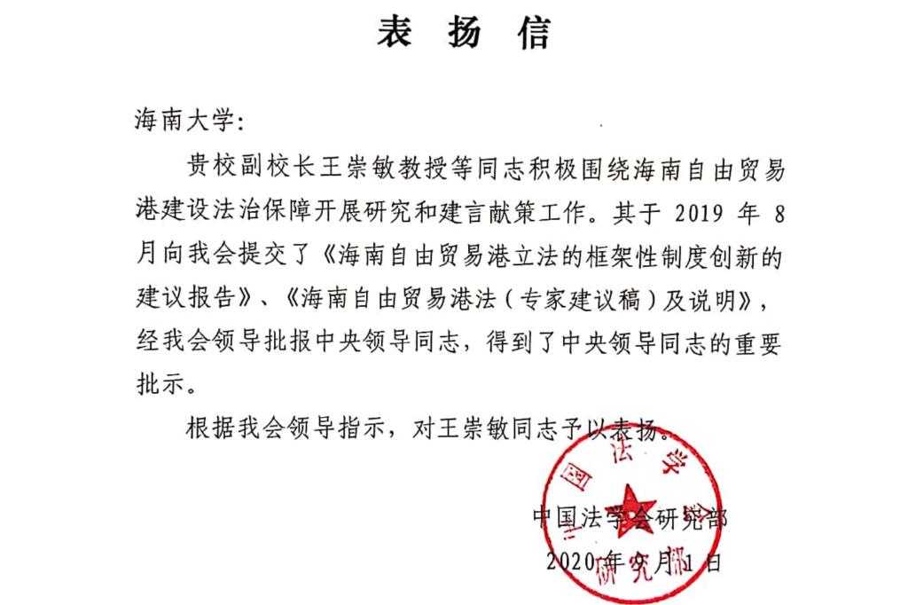 本站讯(通讯员 曹晓路)近年来,开云手机入口王崇敏教授研究团队通过承担“中国特色自由贸易港建设路径及法治保障”国家社科基金重大项目等科研任务,积极服务于海南自由贸易港建设,围绕海南自由贸易港制度创新与法治保障建设开展研究、献计献策。王崇敏教授研究团队先后通过中国法学会,向全国人大常委会提交了《海南自由贸易港立法的框架性制度创新的建议报告》《海南自由贸易港法(专家建议稿)及说明》,得到中央领导同志的重...