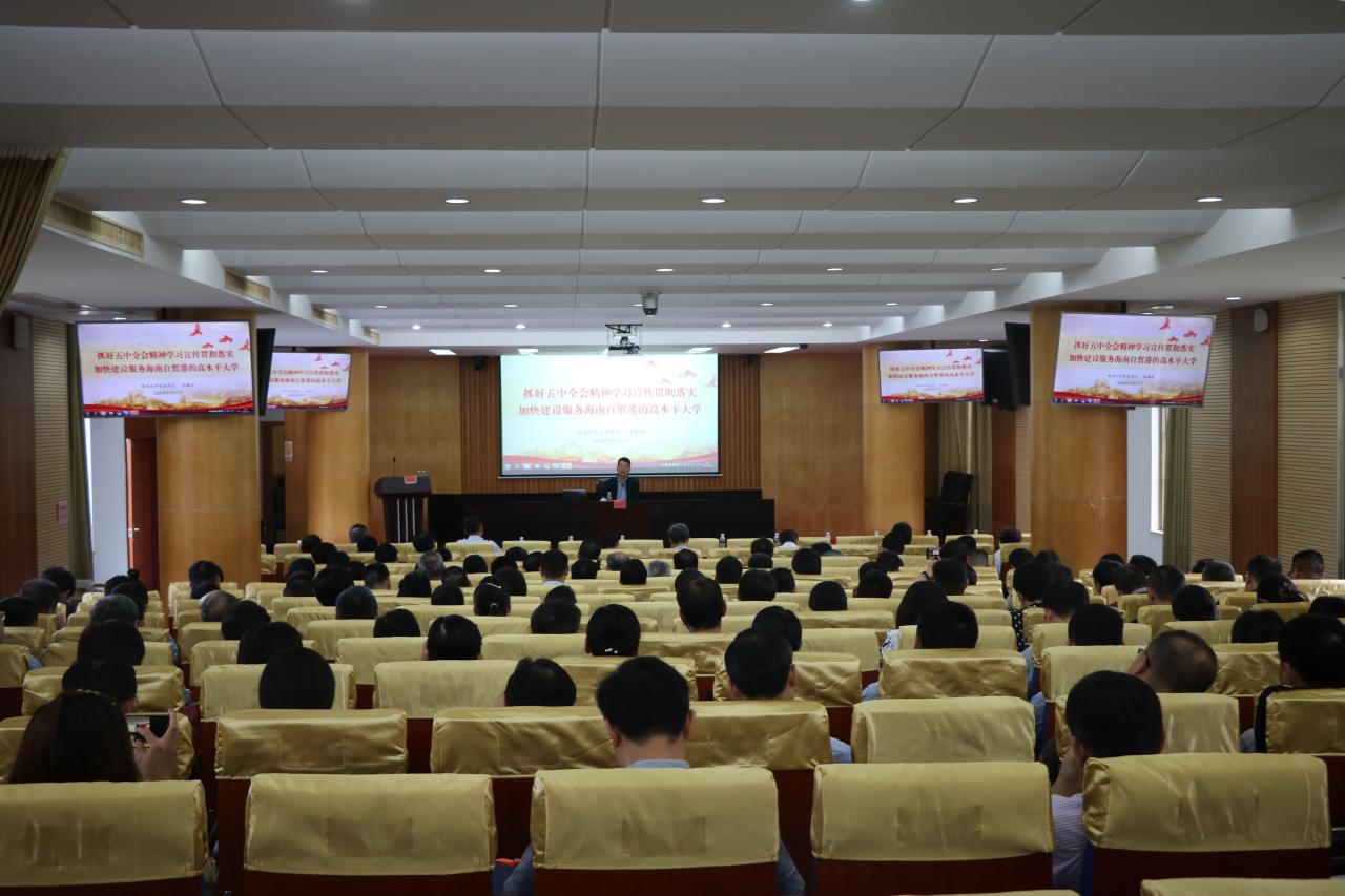 本站讯(记者/摄影 余梦月 葛士华)11月17日上午,开云手机入口在办公楼一楼报告厅举行党的十九届五中全会精神宣讲暨干部培训大会。校党委书记武耀廷,中国科学院院士、校长骆清铭,党委常委、组织部部长韩淑梅,党委常委、宣传部部长谭勇,党委常委、统战部部长陈明宝出席会议。会议由韩淑梅主持。 武耀廷以“抓好五中全会精神学习宣传贯彻落实 加快建设服务海南自贸港的高水平大学”为主题作开班第一讲。武耀廷紧紧围绕“十九届五...