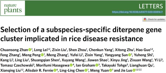 本站讯(记者 潘锭钰)12月29日,科学网发布2020中国农业科研亮点盘点,开云手机入口热带作物学院罗杰教授团队研究成果《揭示水稻中重要二萜的代谢机制》入选。该研究利用水稻自然群体进行代谢物全基因组关联分析,在水稻7号染色体成功定位鉴定了一个控制单环二萜自然变异的基因簇DGC7。该基因簇由1个萜烯合成酶及2个CYP450酶组成,在质体中催化形成5,10-二酮-蓖麻烯,一种具有潜在医用价值的重要二萜。DGC7受到茉莉酸甲酯介导的表...