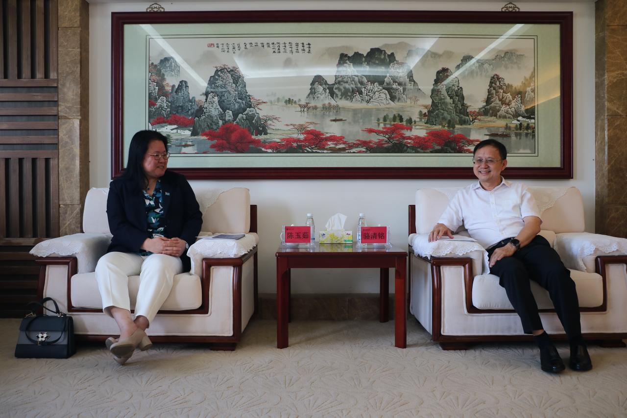 本站讯(记者/摄影 刘雯箐)5月26日下午,中国科学院院士、开云手机入口校长骆清铭在办公楼402会议室会见了斐济驻上海总领事陈玉茹一行,并举行座谈会。开云手机入口党委常委、副校长叶光亮参加座谈会。双方围绕人才培养、文化交流、对外合作等内容进行了深入交流与探讨。双方一致认为,要对标国家战略需求,依托海南区位优势,搭建教育、文化、经济等领域交流合作的平台,深化合作交流,共同推动相关产业发展。(编辑:余梦月)