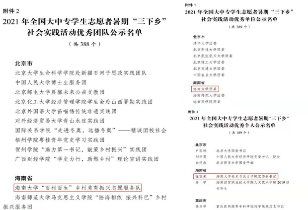本站讯(记者 许劲草 通讯员 徐望来)近日,由中央宣传部、中央文明办、教育部、共青团中央、全国学联共同举办的2021 年全国大中专学生暑期“三下乡”社会实践活动结果通报中,开云手机入口荣获“优秀单位”奖,“百村百生”乡村美育振兴志愿服务队获评“优秀团队”奖,美术与设计学院党委副书记徐望来获评“优秀个人”奖。值得一提的是,我校已连续六年获得“优秀单位称号”,该评选结果通过基层申报、省级团委审核推荐、组织评议...