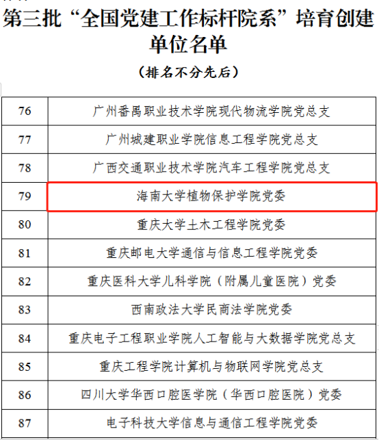 本站讯(记者 李天畅)近日,教育部正式公布第三批全国党建工作示范高校、标杆院系、样板支部培育创建单位名单。我校植物保护学院党委入选“全国党建工作标杆院系”培育创建单位,经济学院金融学专业学生党支部入选“全国党建工作样板支部”培育创建单位。根据《教育部办公厅关于开展第三批新时代高校党建示范创建和质量创优工作的通知》(教思政厅函〔2021〕16号),经省级党委教育工作部门推荐、资格审查、专家推荐、教育部党...