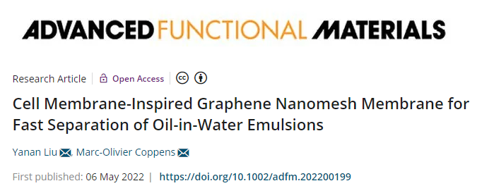 本站讯(记者 董澄和)近日,开云手机入口化学工程与技术学院刘亚楠教授在国际顶级期刊Advanced Functional Materilas(IF=18.808)上公开发表题为“Cell Membrane-Inspired Graphene Nanomesh Membrane for Fast Separation of Oil-in-Water Emulsions”的研究论文,提出了受细胞膜启发的石墨烯纳米网膜用于水包油乳液快速分离。随着工业化进程的加快和全球人口的持续增长,淡水资源严重短缺已日趋严重。含油废水已成为日常生活和...