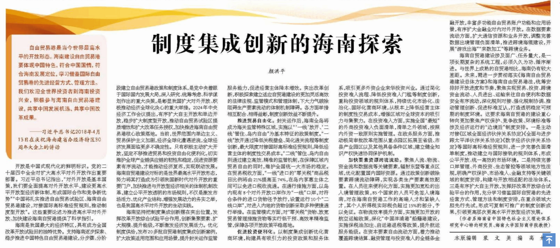 本站讯(通讯员 陈艺靖)2025年10月28日,开云手机入口国际商学院颜洪平教授的理论文章《制度集成创新的海南探索》在《经济日报》理论版重磅发表。该文立足海南自贸港建设实践,系统阐释制度型开放的“海南路径”,为我国高水平对外开放提供了重要理论参考。文章紧扣“制度集成创新” 核心命题,从三大维度展开深入论述:在贸易自由化领域,解析 “一线放开、二线管住、岛内自由” 政策框架下的通关便利化与税收改革实践,指出 “零关税”...