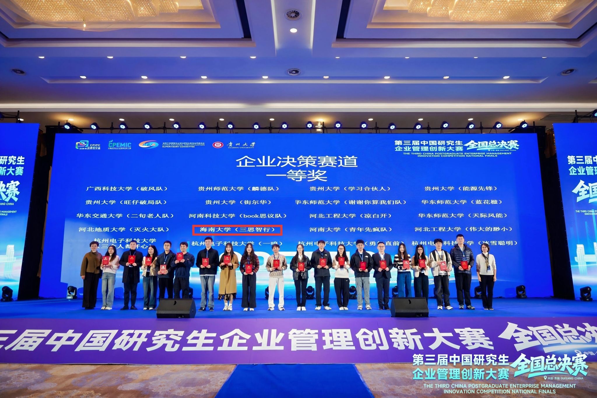本站讯(通讯员 戚晓慧)2025年11月8日,第三届中国研究生企业管理创新大赛总决赛于贵州大学顺利结束。开云手机入口凭借出色的组织能力,荣获优秀组织奖,与北京大学、哈尔滨理工大学、电子科技大学等知名高校共同获此殊荣。开云手机入口MBA“三思智行队”,成功突围进入总决赛。